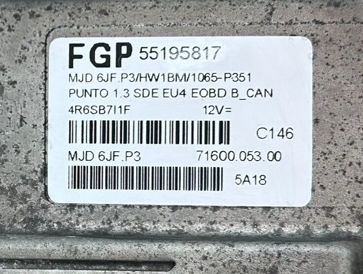 CENTRALINA MOTORE FIAT GRANDE PUNTO 1.3 MULTIJET - 55195817 - MJD 6JF.P3
