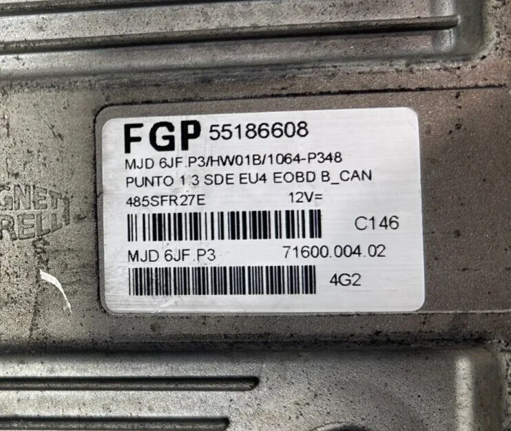 CENTRALINA MOTORE ECU FIAT PUNTO 188 1.3 DIESEL - 55186608 - MJD 6JF.P3 - HW01B
